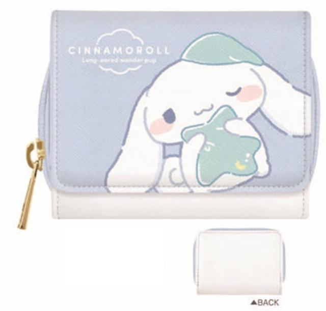 クラ125623【サンリオキャラクターズ】【むにゃっとシリーズ】三つ折り財布【シナモロール】【シナモン】【サイフ】【財布】【さいふ】【折りたたみ】【コンパクト】【子供】【キッズ】【雑貨】【グッズ】【かわいい】