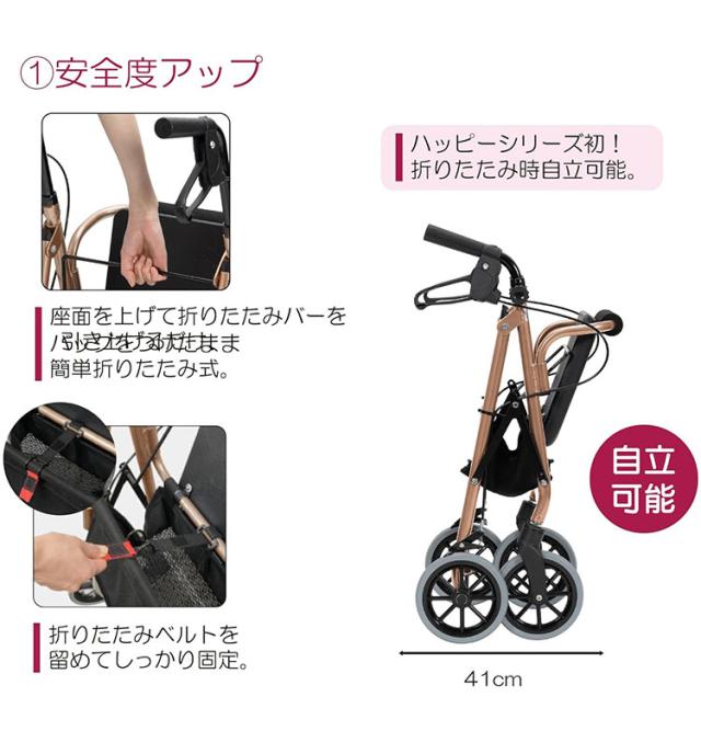 竹虎 歩行車ハッピー3ミニ/ローズゴールドメタリック/- ローズゴールドメタリック 117093 920634_12270_-(代引不可)【送料無料】