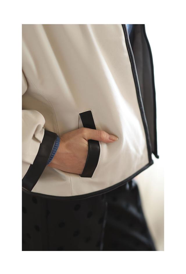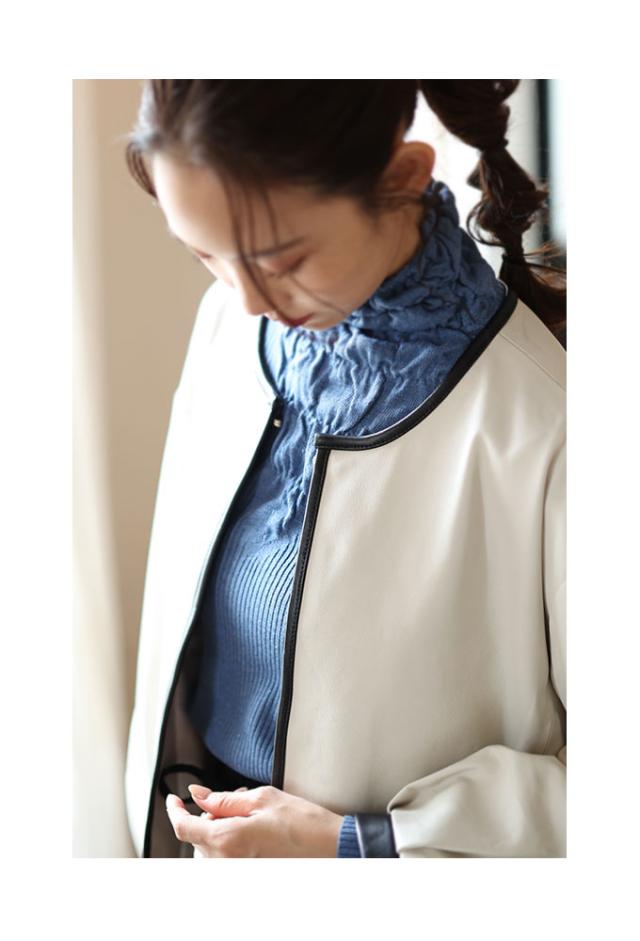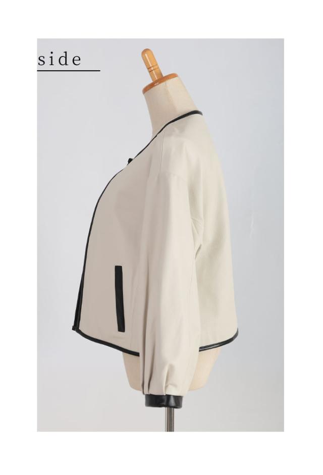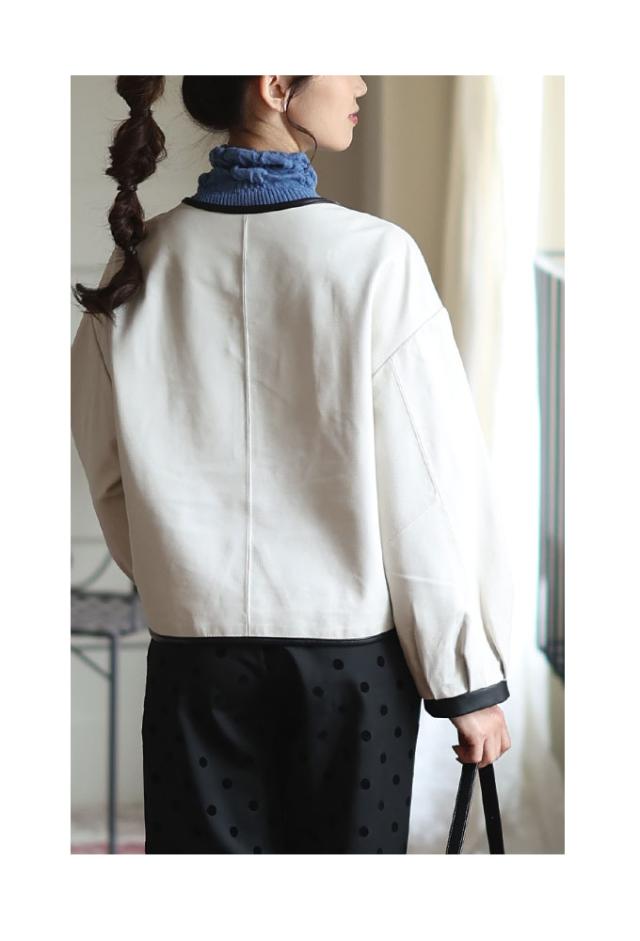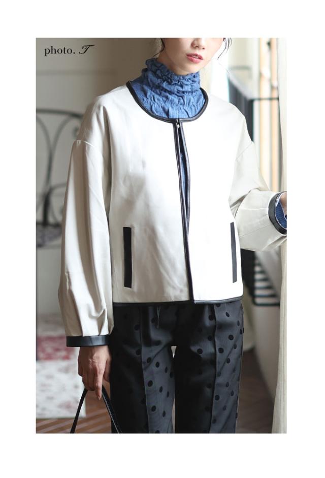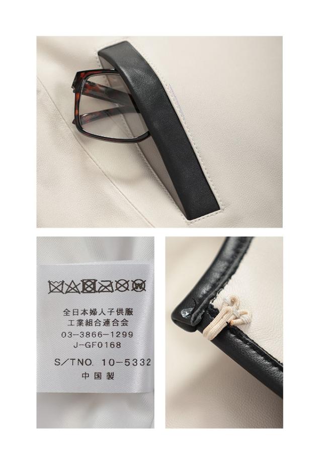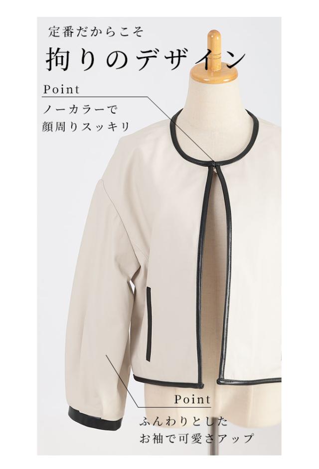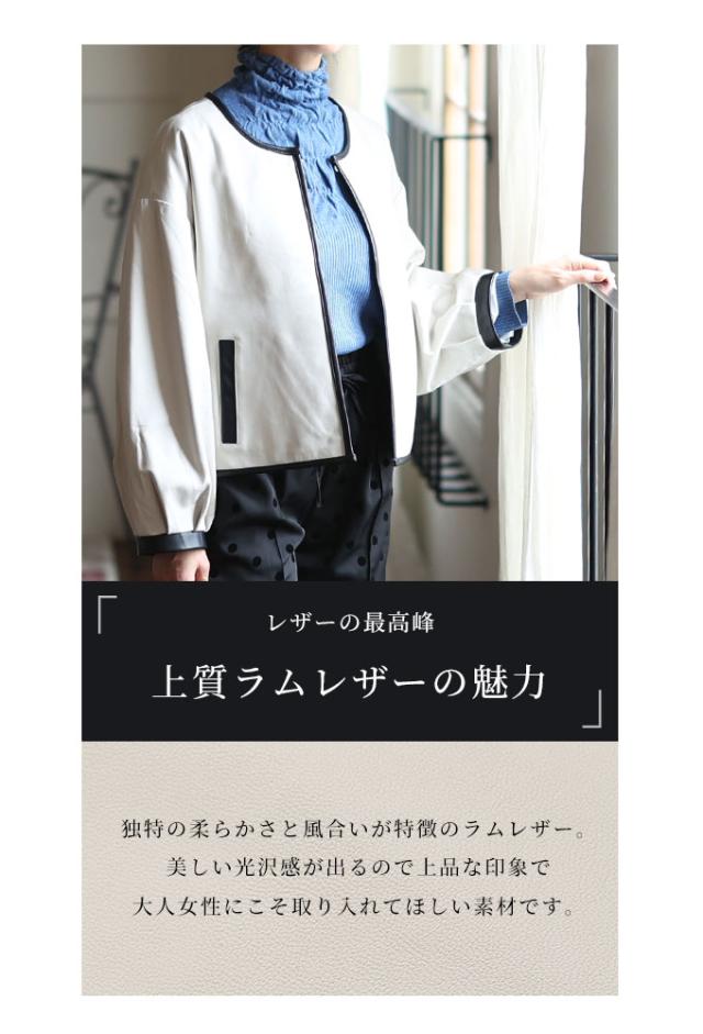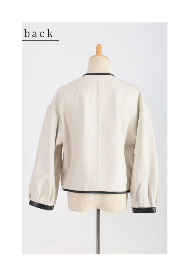 特徴: パフスリーブ ノーカラー 本革 レザー ラムレザー