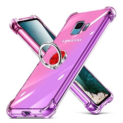 Galaxy s9 対応 ケース 耐衝撃 リング クリア 透明 Galaxy s9 対応 カバー 耐衝撃 TPU クリア 透明 スリム 薄型 グラデーション スタンド機能 車載ホルダー TPU 黄変防止 指紋防止 防塵 滑り防止