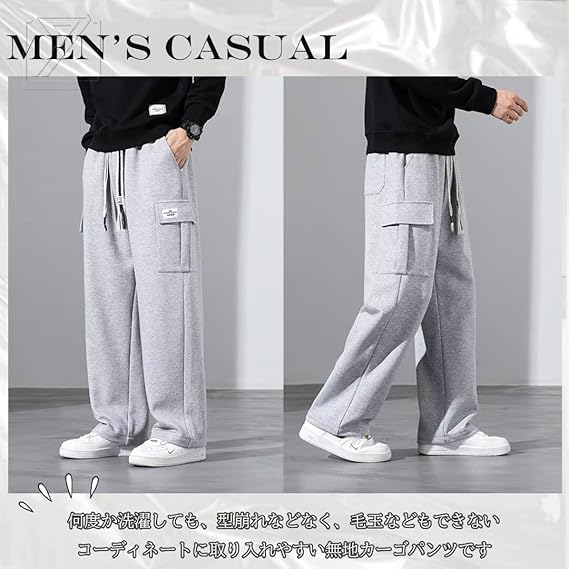 【縫製がしっかり】 生地は思ってた以上にしっかりしていて、糸のほつれなどの心配がない。何度か洗濯しても、型崩れなどなく、毛玉などもできない。コーディネートに取り入れやすい無地カーゴパンツです。両サイドポケットは財布や小物入れやすく、作業着やアウトドアにも使用できる便利なスエットパンツ!