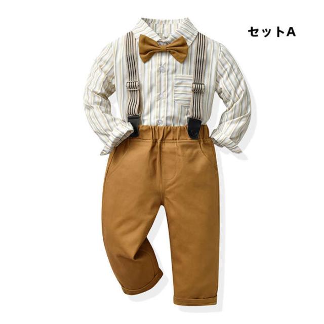 スーツ 男の子 フォーマルスーツ 正統派スーツ 子供スーツ 2点セットスーツ サロペット シャツ ジュニアスーツ サスペンダー付き ベビー服 子どもスーツ