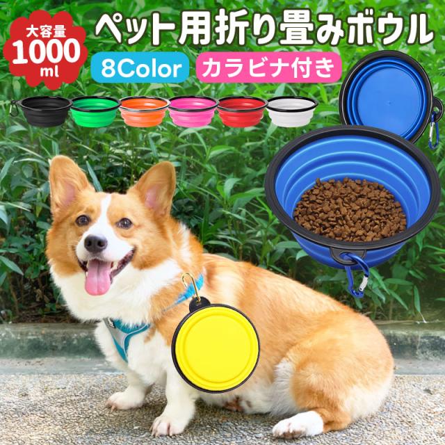 折畳み式ペット食器 ペット用ボウル 犬用 猫用 1000ml 折りたたみ フードボウル TPE素材 軽量 カラビナ付き 皿 携帯便利 食器