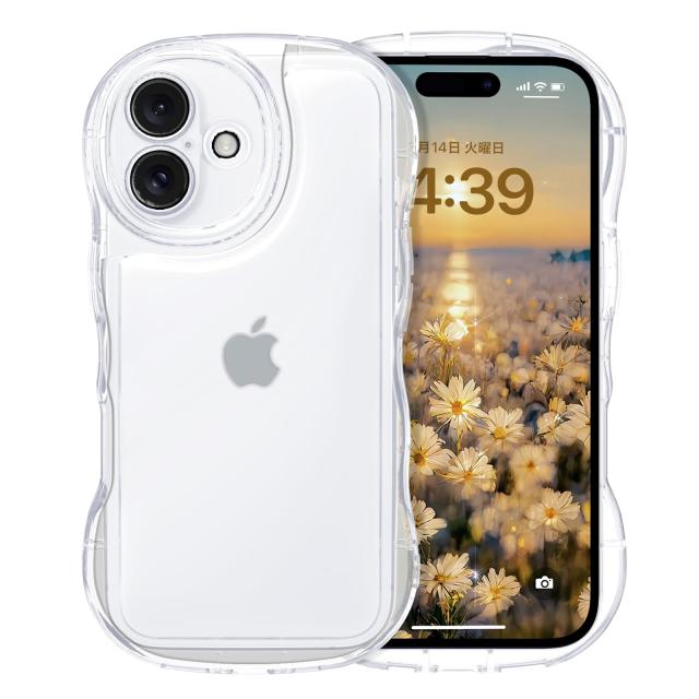 GUAGUA いphone 16 ケース クリア ウェーブ i Phone16 ソフト TPU 透明 ケース うねうね 人気 バンパー 耐衝撃 超軽量 薄型 ワイヤレス充電対応 ストラップホール付き アクスタが入る スマホケース i Phone16 楕円形カメ ラ アイフォン 16 6.1インチ なみなみ カバー(クリア 透明)