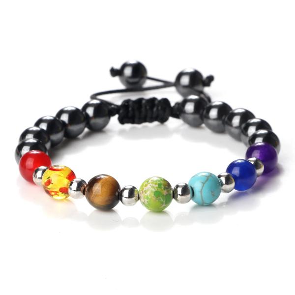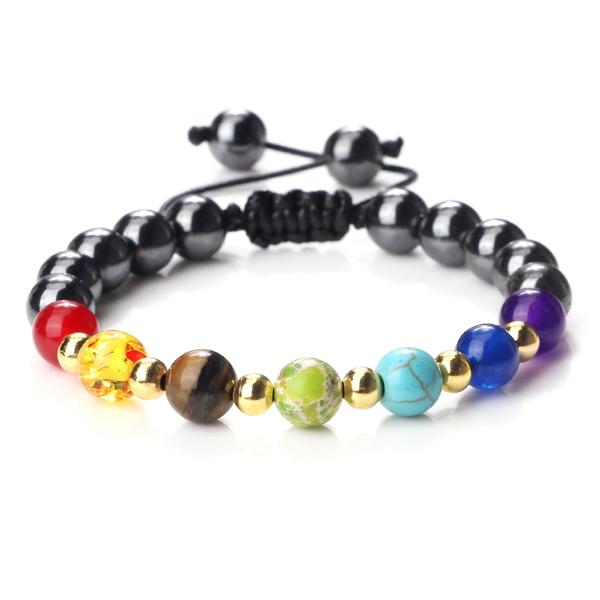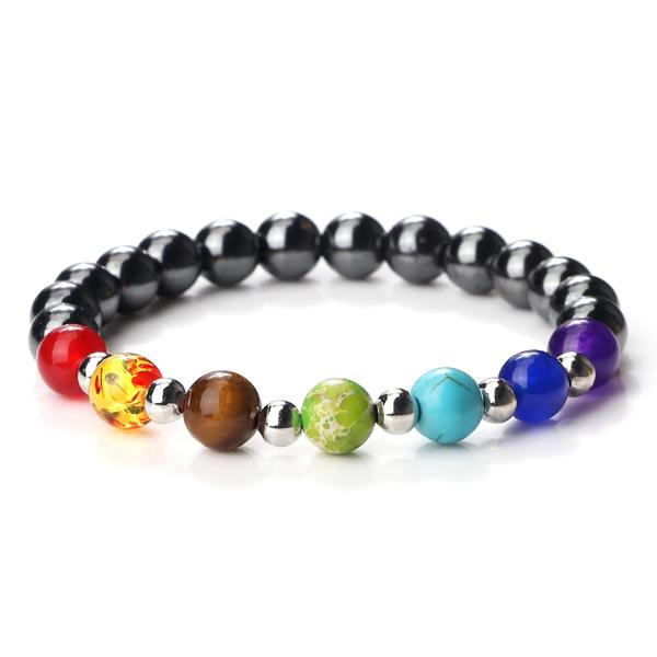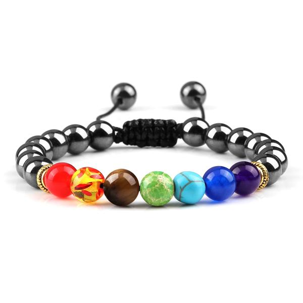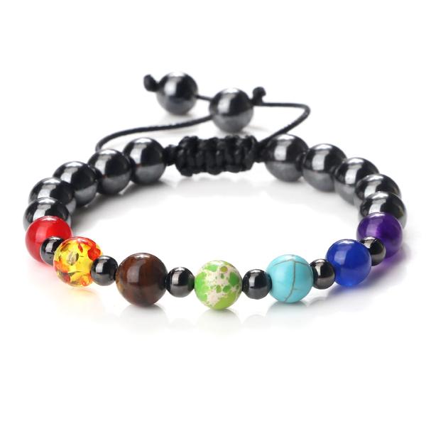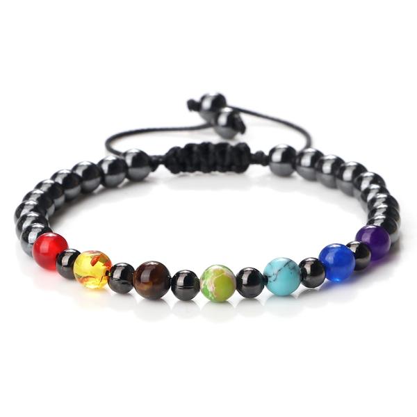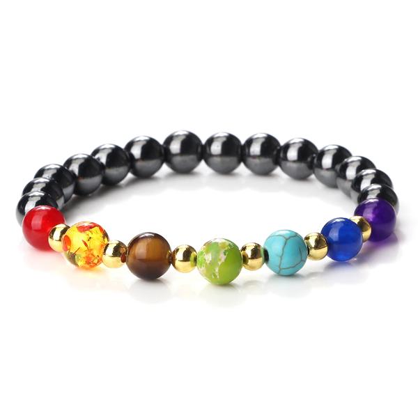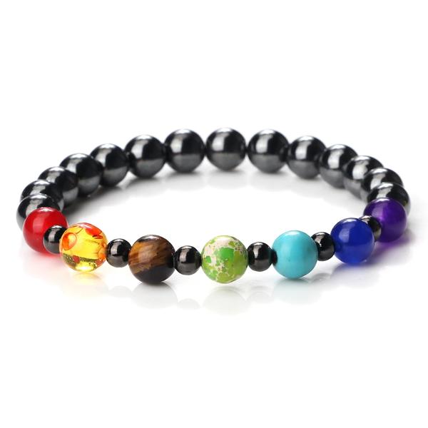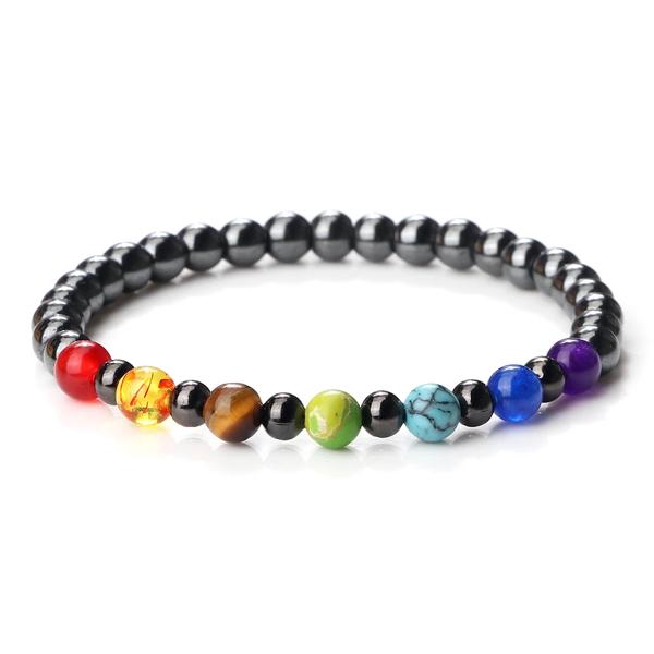 Dropshipping Healing 7 Chakra Beaded Bracelets Men 6 8mm Hematite Engery Stone Yoga Bangles Women Black Gallstone Health Protection Jewelry Pulsera Erkek Bileklik Homme Lover Gift