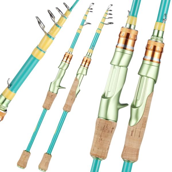 ハイカット-伸縮式釣り竿 カーボンファイバースピニングとキャスティングロッド 軽量釣りポール