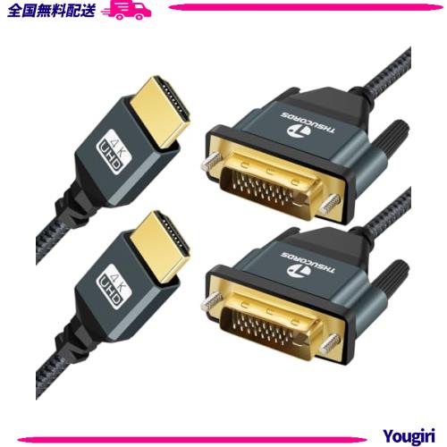 Thsucords 4K HDMI - DVIケーブル 2本パック 1M 金メッキ&編組DVI - HDMIアダプターケーブル 双方向 プロジェクター ノートパソコン テレ