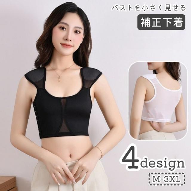 ナベシャツ 補正下着 胸潰し レディース 女性用 大きいサイズ インナー コルセット 肩パッド付 ホック式 ジッパー式 揺れ防止