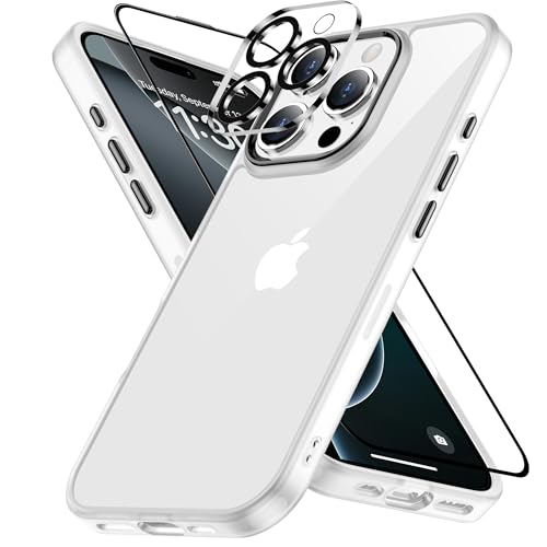 iPhone 16 Pro ケース ホワイト レンズ?ガラス保護付き 黄変防止 アイフォン16 プロケース 耐衝撃 アイフォン 16 ぷろケース 指紋防止