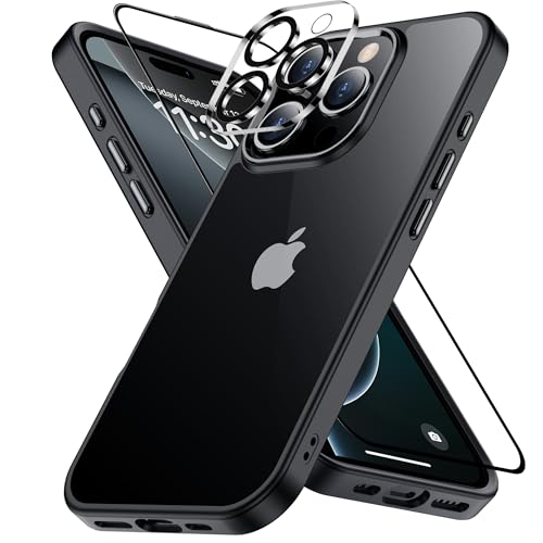 iPhone 16 Pro ケース ブラック レンズ?ガラス保護付き 黄変防止 アイフォン16 プロケース 耐衝撃 アイフォン 16 ぷろケース 指紋防止