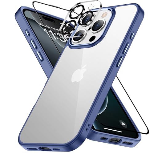 iPhone 16 Pro ケース ブルー レンズ?ガラス保護付き 黄変防止 アイフォン16 プロケース 耐衝撃 アイフォン 16 ぷろケース 指紋防止 落