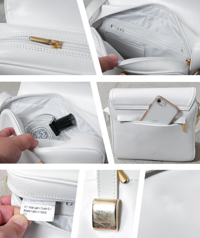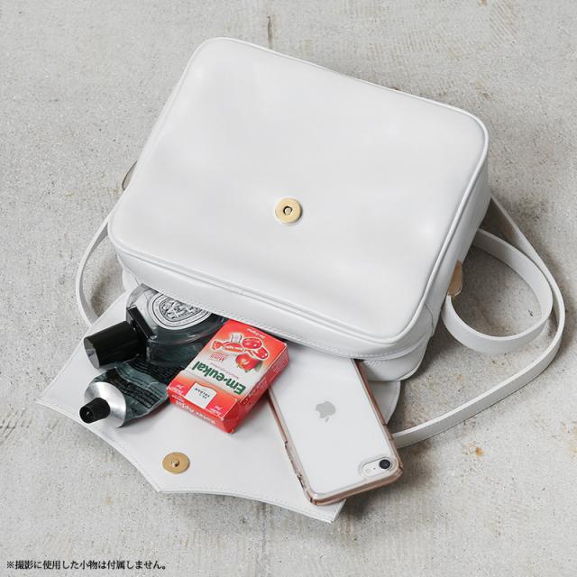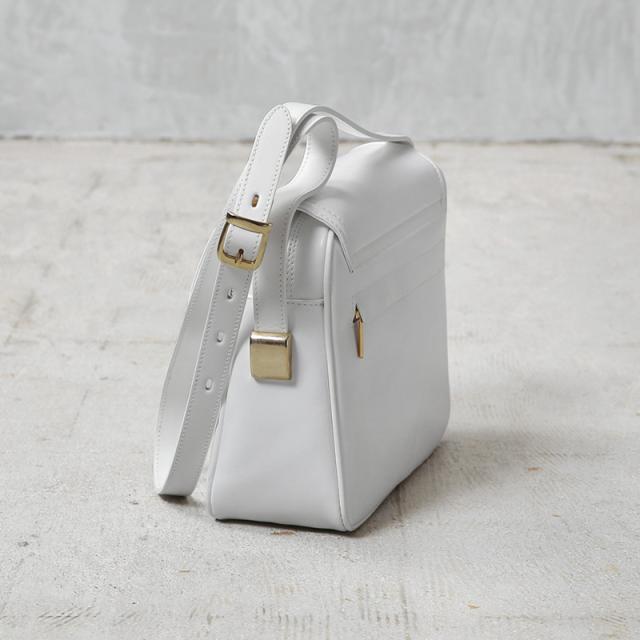 2000年代初頭、イタリア海軍の学生向けに支給されていたホワイトのショルダーバッグが登場しました。礼装でのセレモニー時などの使用はもちろん、日常使いにも重宝するバッグとなっています。マグネット式フラップとジッパーで開閉。クラシカルなBOXシルエットに、裏側にフラップ付きジップポケット、内側にもジップポケット、IDカードなどを入れられる小ポケットがありコンパクトながら機能的な造りになっています。マリナーズらしい、爽やかなホワイトのレザーに、ゴールドの金属パーツがよく映え、高級感あり。ショルダーストラップは、肩掛け、斜め掛けなど好みに合わせて長さ調節可能になっています。