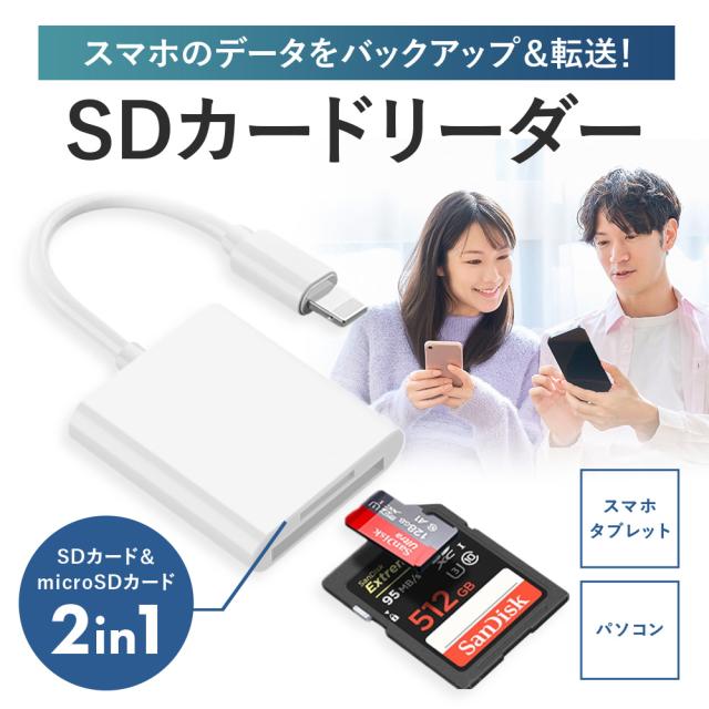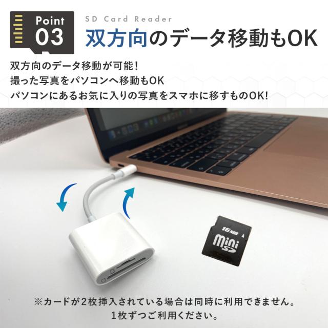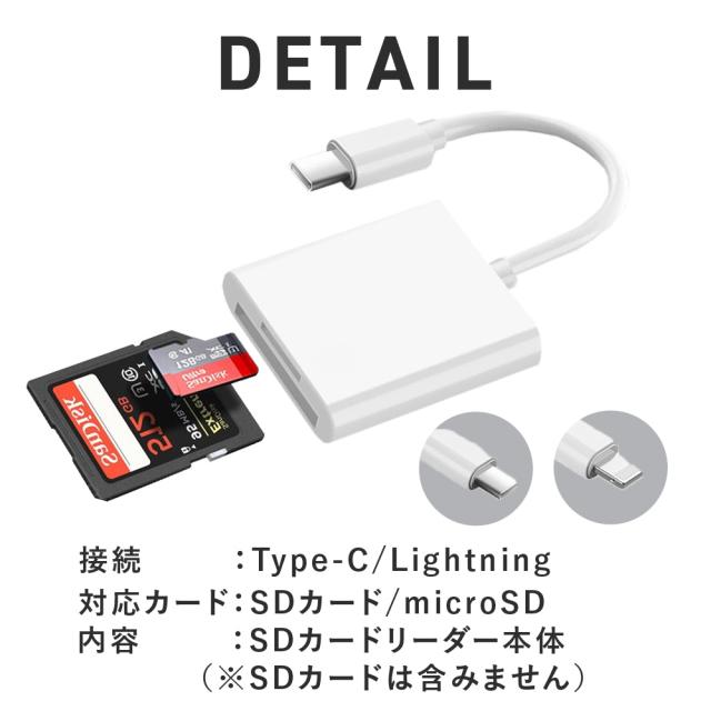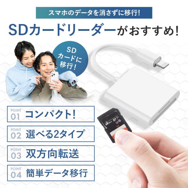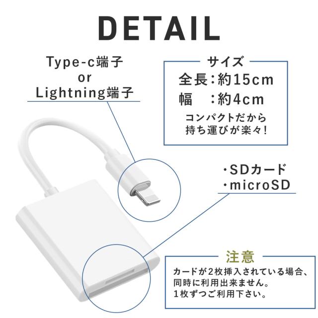 SDカードリーダー データ転送 iPhone Android type-c Lightning スマホ タイプc ライトニング 直接 パソコン SDカード microSD