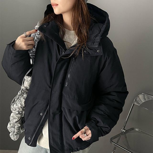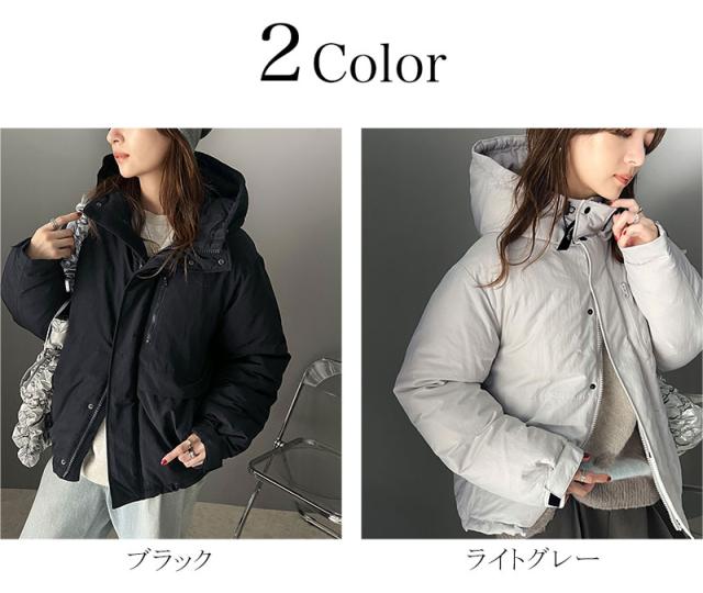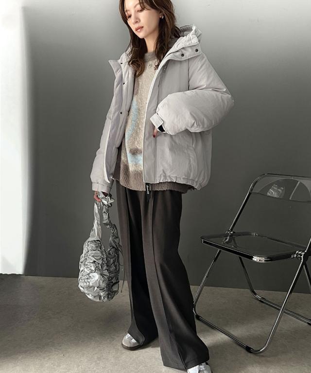 フード付きで首まですっぽりカバーしてくれるボリューム感で真冬でも安心。