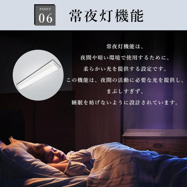 - 本製品には常夜灯機能が搭載されています。この機能は、夜間に柔らかな光を提供し、安全で快適な環境を作り出します。
