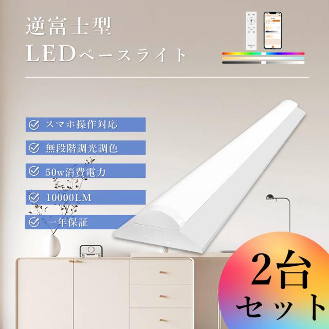 【2台セット】ledベースライト 40W型 2灯相当 調光調色 逆富士 LED蛍光灯 リモコン 器具一体型 一体型照明 天井直付型 直管蛍光灯 照明 おしやれ 天井 led 照明器具 リビング 和室 led間接照明 省エネ 高輝度 50w 10000lm 節電 明るい スマート照明 タイマー付き 常夜灯