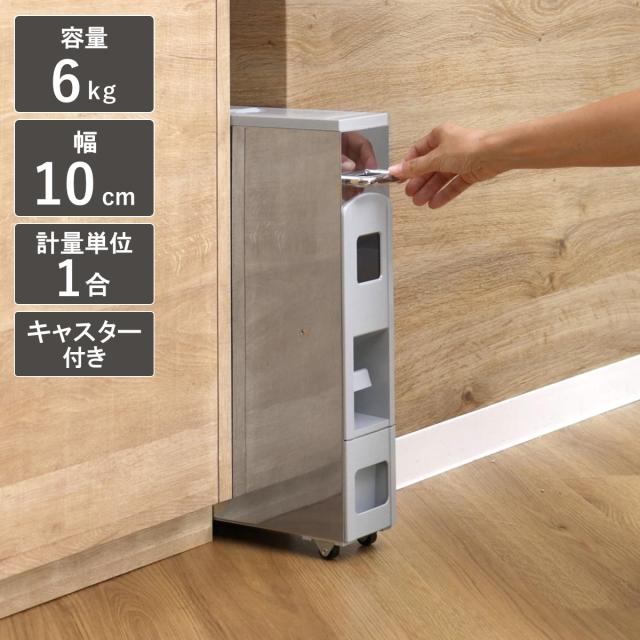 米びつ 5kg用 スリムライスディスペンサー ステンレス グレー 6kg ( キャスター付き 5kg 無洗米対応 一合計量 計量米びつ 幅10cm ライスボックス 米びつ5キロ 米びつ 5kg 米びつ 計量)