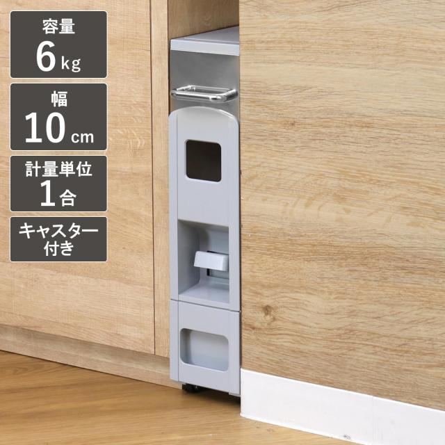 米びつ 5kg用 スリムライスディスペンサー ステンレス グレー 6kg ( キャスター付き 5kg 無洗米対応 一合計量 計量米びつ 幅10cm ライスボックス 米びつ 5kg 米びつ5キロ 米びつ 計量)