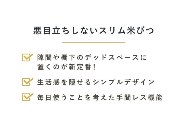 | 材質 | 本体:ステンレス鋼板 フタ・残量確認窓:AS樹脂 ハンドル:ABS樹脂 米受皿:ポリスチレン樹脂 キャスター(ローラー部):ポリアセタール樹脂 |