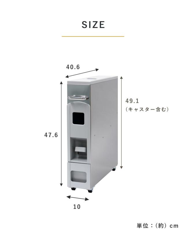 | サイズ | 約 幅10×奥行40.6×高さ47.6(cm) ※キャスターを含む高さ:約 49.1cm |