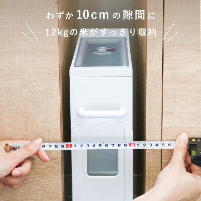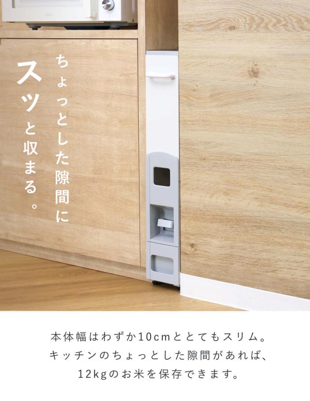 米びつ 10kg用 スリムライスディスペンサー グレー 12kg ( キャスター付き 10kg 無洗米対応 一合計量 計量米びつ 幅10cm ライスボックス 計量 10キロ用 米びつ10キロ 米びつ 計量)