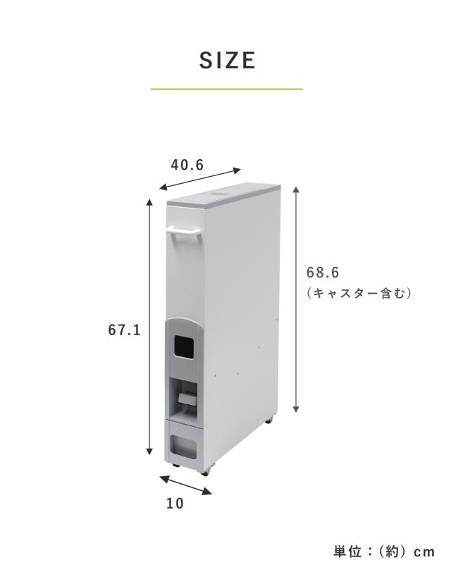 | サイズ | 約 幅10×奥行40.6×高さ67.1(cm) ※キャスターを含む高さ:約 68.6cm |