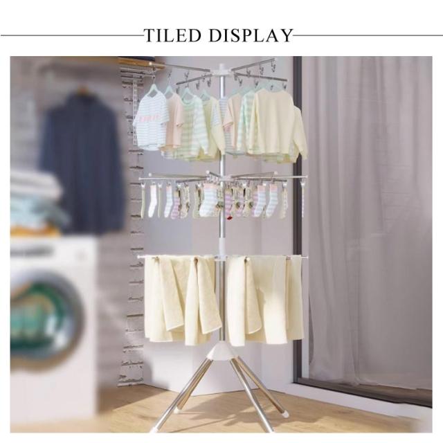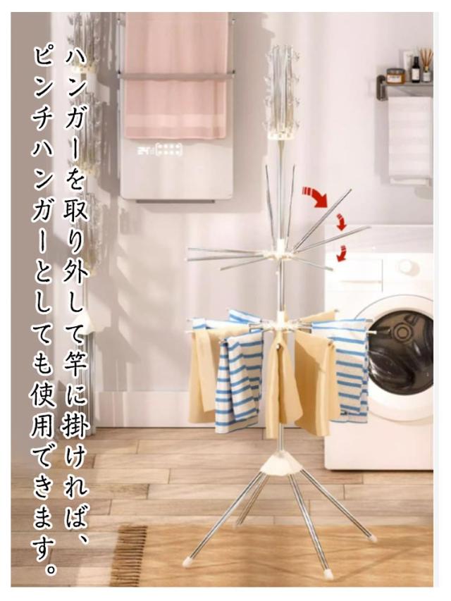 室内干し 折りたたみ 部屋干し 洗濯物干し 物干しスタンド 3段 ピンチ付き 360度回転 ピンチハンガー パラソルハンガー ベランダ用 大容量 省スペース 室内・屋外兼用 滑り止め 洋服 タオル干し ステンレス製 組み立て簡単 送料無料
