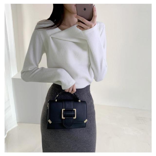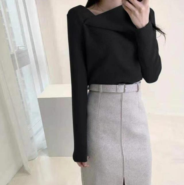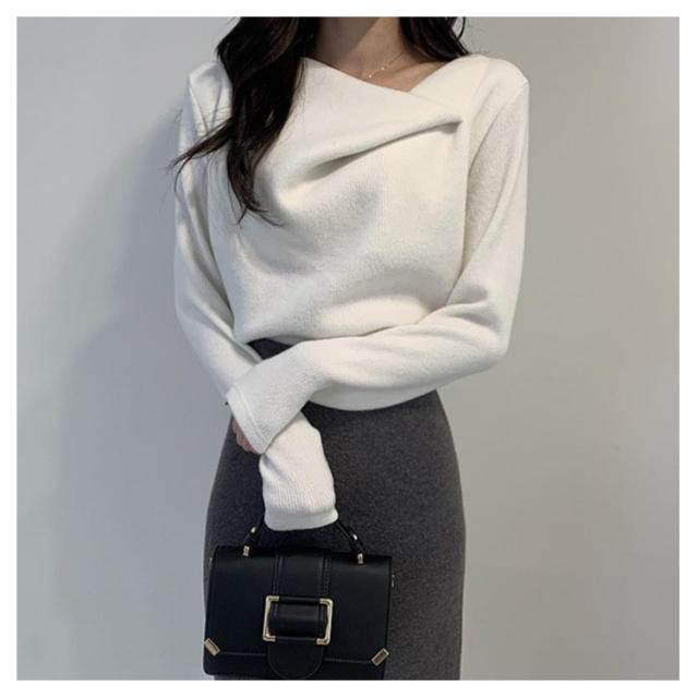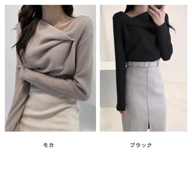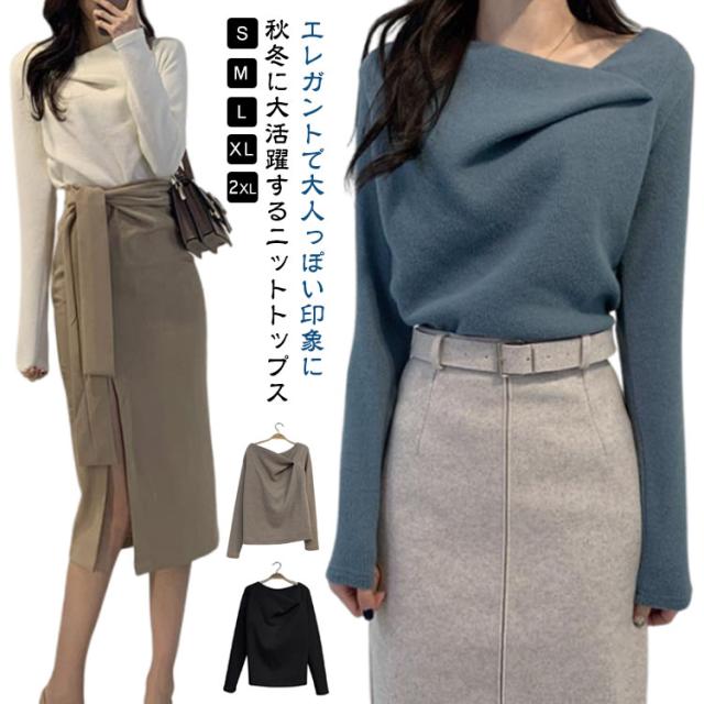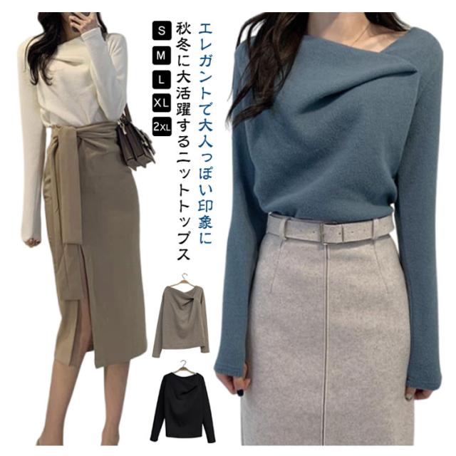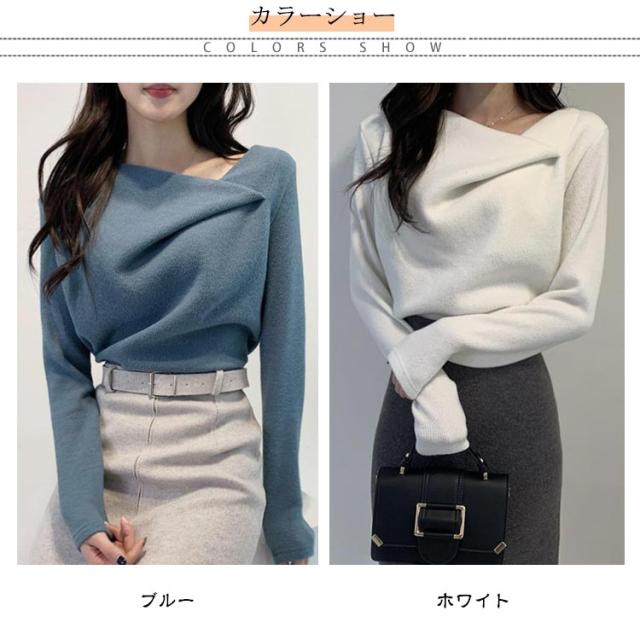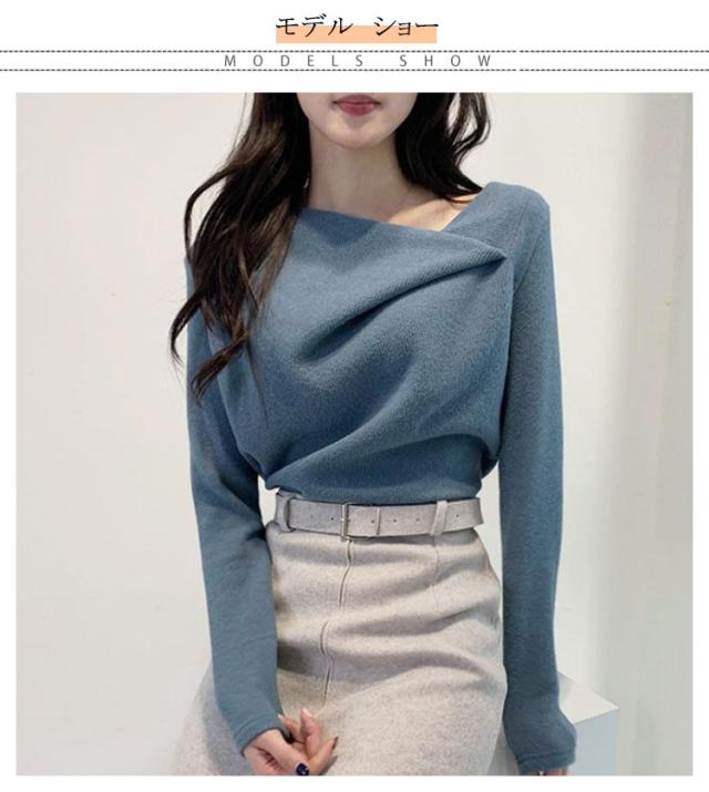 大人可愛い 秋冬 レディース オフィス セクシー ニットトップス トップス 長袖 セーター プルオーバー 韓国 ニットセーター アシンメトリー 無地 アシメ イレギュラーネック イレギュラーネック 上品 きれいめ アシンメトリーネック 秋 冬 やわらか