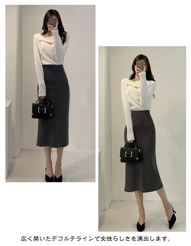 | エレガントで大人っぽい印象に 秋冬に大活躍するニットトップス S-2XL 大胆に開いたデコルテラインが目を惹くイレギュラーネックニットプルオーバー。 ダボつかない、コンパクトなフィット感できれいめながらもセンシュアルに着こなせるアイテムです。 あえて着崩したような個性的なイレギュラーネックデザインがポイント。鎖骨のラインが綺麗に見えて上品に着れる。 広く開いたデコルテラインで女性らしさを演出します。 | |