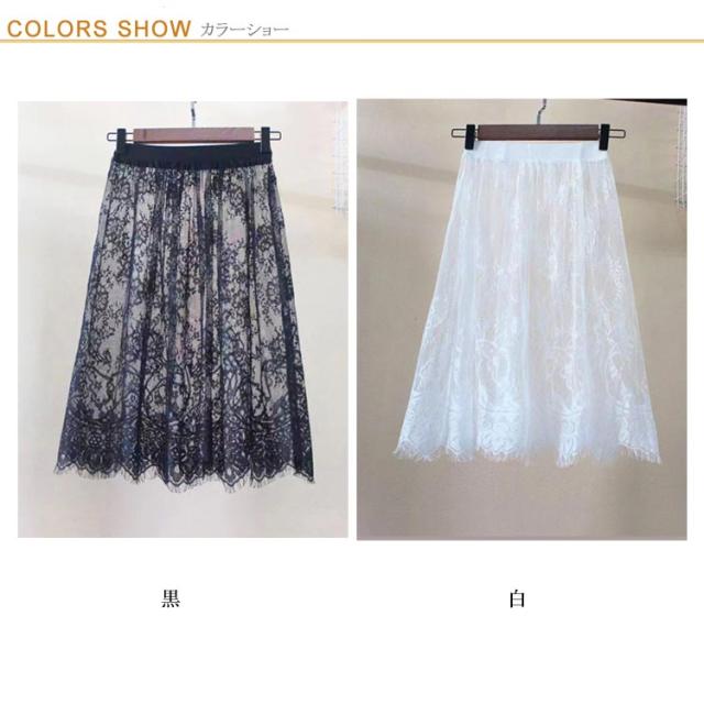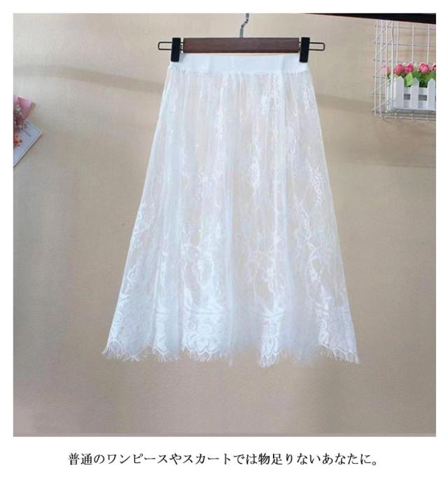 ペチコート おしゃれ インナー 60cm ロング 黒 レイヤード スカート ペチスカート ドレスインナー 重ね着 総レース 丈増し ゴムウエスト 黒 スカート レディース ロングスカート マキシ丈 白