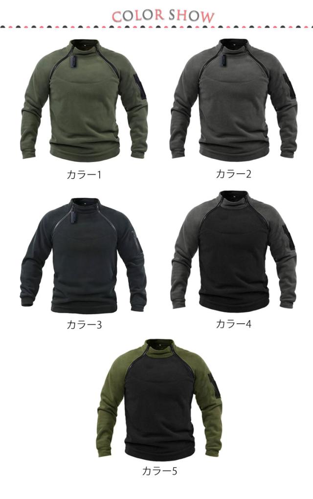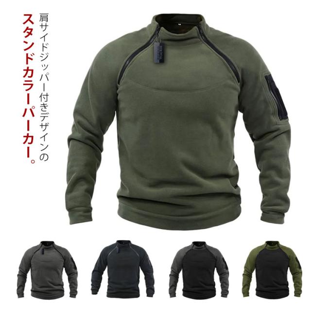 ボアフリース トレーナー メンズ 大きいサイズ スタンドカラー 秋冬 トップス もこもこ 暖かい アウトドア カジュアル ミリタリー ジップ付き S M L XL 2XL 3XL 4XL
