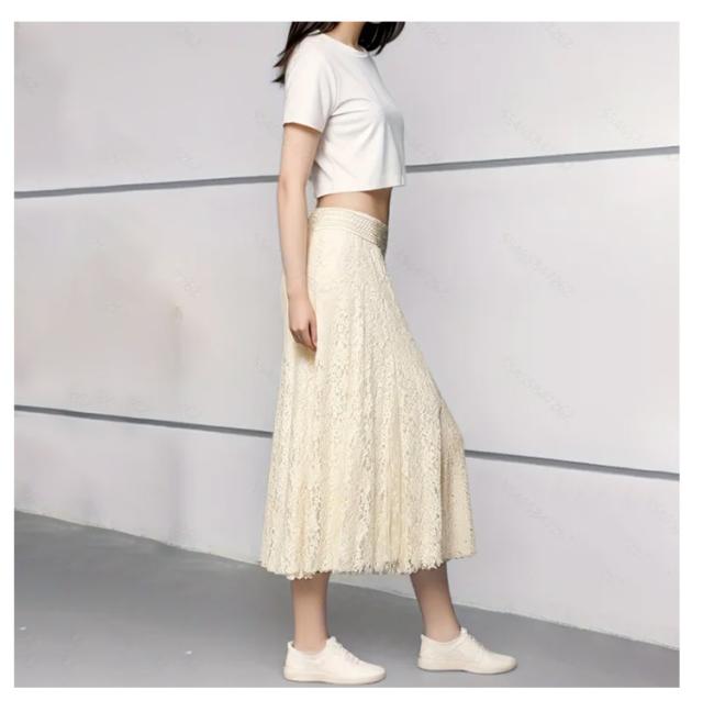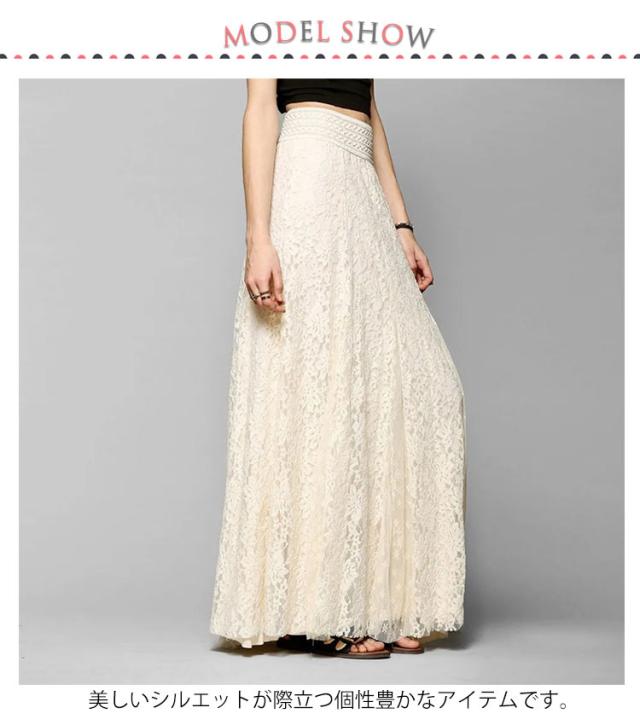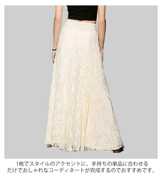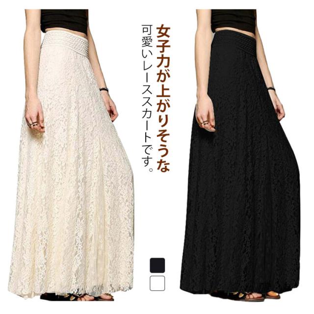 マキシスカート 大きいサイズ フレアスカート レーススカート マキシ丈 スカート ロングスカート ウエストゴム ハイウェスト スカート 体型カバー 着痩せ 大人可愛い S M L XL 2XL 3XL