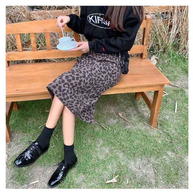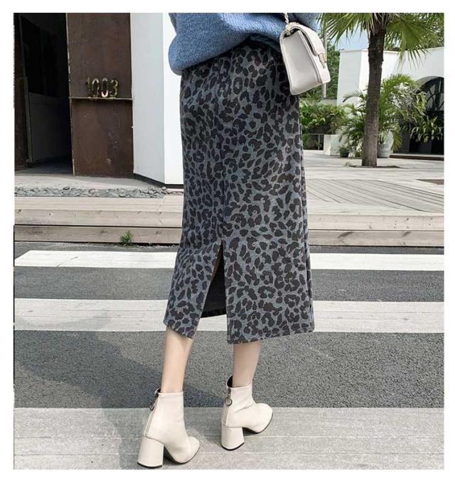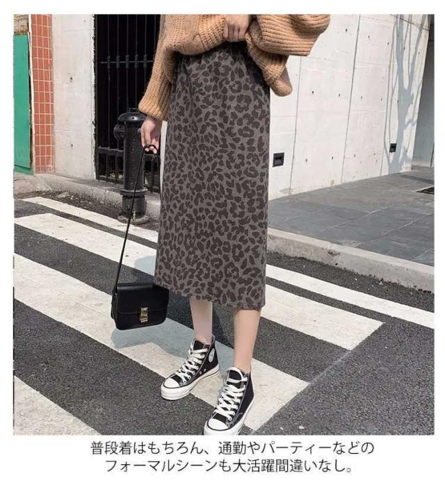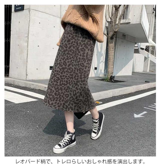 ラシャタッチ ストレートスカート タイトスカート レディース スカート ミモレ丈 ハイウェスト ロング スカート レオパード柄 ヒョウ柄 バックスリット 着痩せ 冬 カジュアル ひざ下 おしゃれ S M L XL