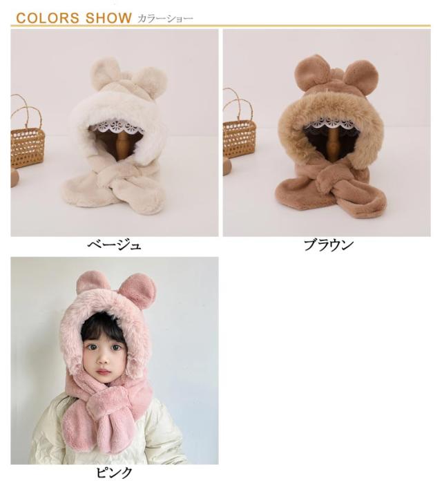 一体 マフラー 男の子 くま キッズ 冬 ベビー 保育園 熊耳 防寒 もこもこ ボア 子供 帽子 女の子 一体型帽子 マフラー 子供 子供服 付き 帽子 おしゃれ 帽子 ふわふわ キャラクター フードウォーマー 子ども こども