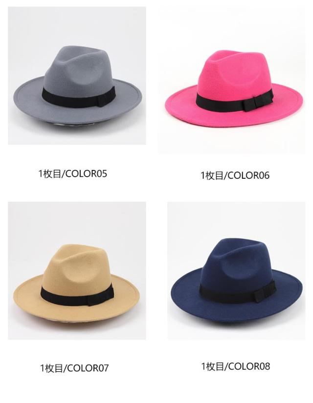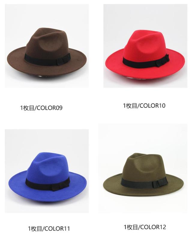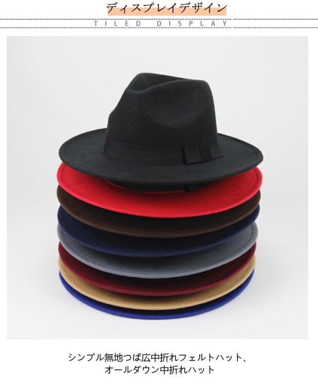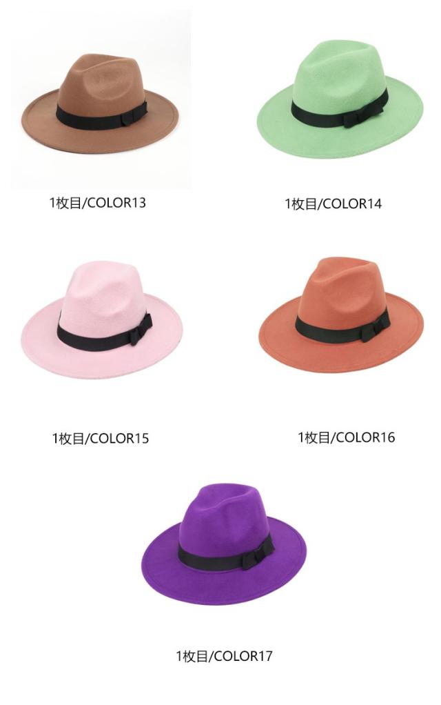 | 中折れフェルトハット 頭囲56-59cmサイズ調整可能 男女兼用 17カラー 色選べる2個セット ◆シンプル無地つば広中折れフェルトハット、オールダウン中折れハット ◆メンズでもレディースでもかぶれる。コーディネートにも幅が広がる。 ◆やや硬めなづくりでシルエットがしっかり!内側のリボンでサイズの微調節が可能。 | |