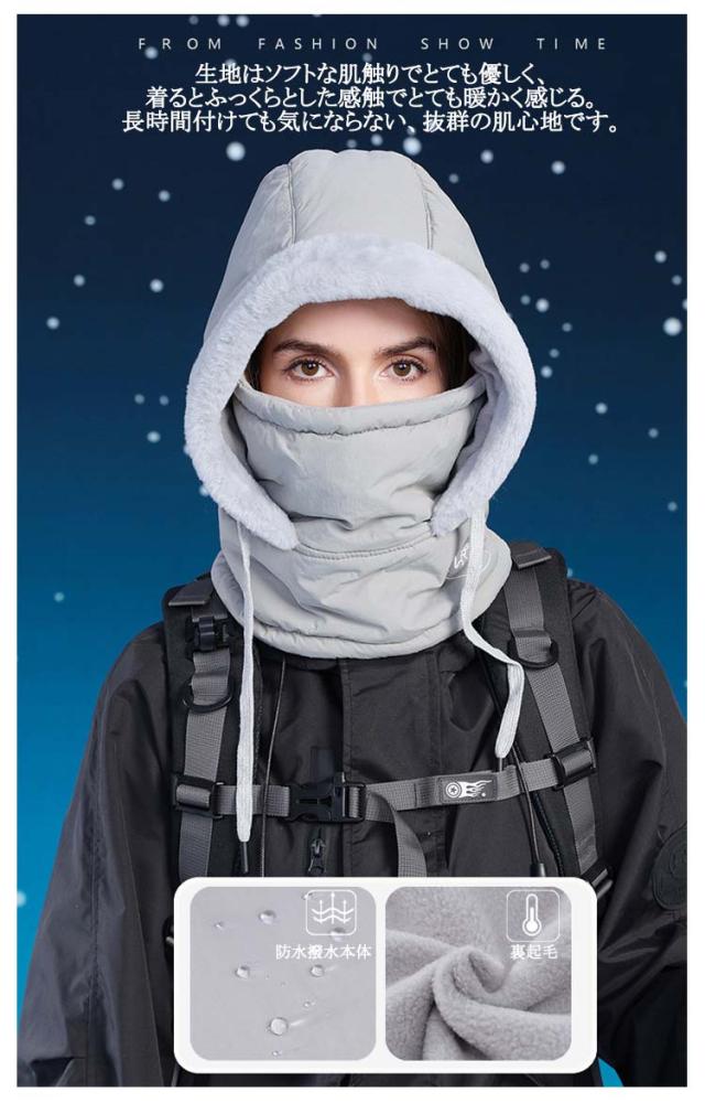 | マルチ機能のウォームネックウォーマー(ネックウォーマー)、フェイスガード(マスク)、バラクラバ(ヘッドギア)、イヤーカバー(イヤーマフ/イヤーウォーマー)、小さな帽子など。 保温性により熱を逃すこともなく、首元から鼻までしっかりとカバー、外気を通さないことで高い防寒性をキープします。 生地はソフトな肌触りでとても優しく、着るとふっくらとした感触でとても暖かく感じる。長時間付けても気にならない、抜群の肌心地です。 汎用性の高いデザインなので、冬のアウトドアにも最適です。 | |