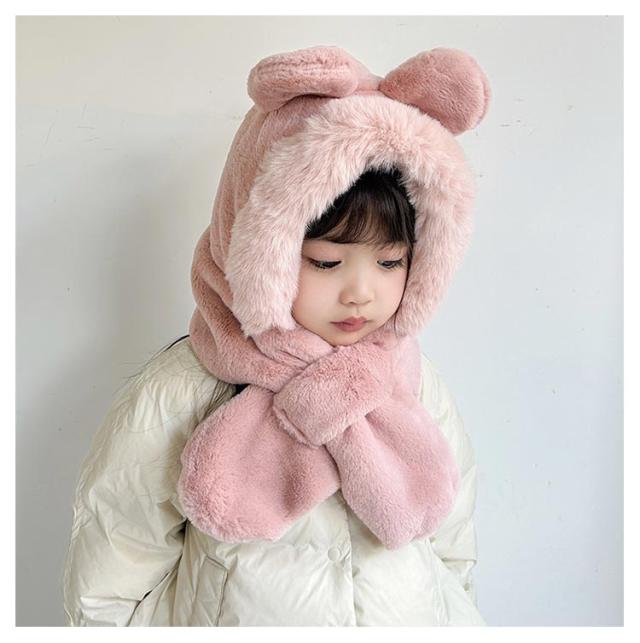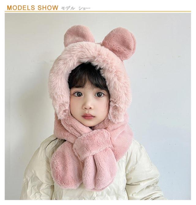 帽子 キャラクター キッズ 冬 くま ベビー 男の子 帽子 マフラー マフラー ボア 赤ちゃん 一体 子供服 女の子 保育園 一体型帽子 子供 熊耳 付き 帽子 おしゃれ もこもこ ふわふわ 子供 フードウォーマー 子ども こども