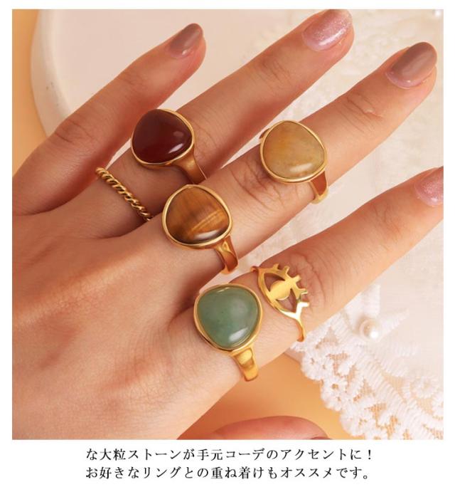 | ヌーディーに艶めくオーバル型のカラーストーンを配したリング。 な大粒ストーンが手元コーデのアクセントに!お好きなリングとの重ね着けもオススメです。 水にも強く、金属アレルギーの方でも比較的安心して使えるお肌に優しいカルステンレス製。 カジュアル系はもちろん、フォーマル等、様々なファッションコーデにもオールラウンダーに活躍してくれます。 | |