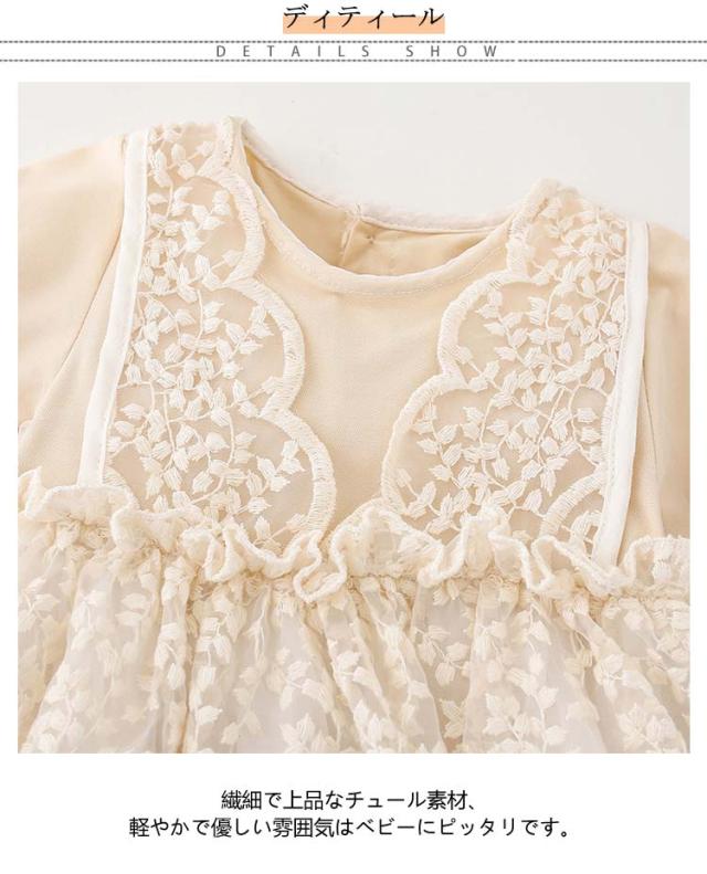 長袖 ロンパース 赤ちゃん 綿 ベビー 半袖 セレモニードレス ベビードレス キッズ 膝丈 刺繍 チュール 女の子 ワンピース 結婚式 ドレス 髪飾り付き 66 73 80 90 ベビー服 コットン レース 子供 春 夏 秋 フォーマル 髪飾り付き かわいい 花柄