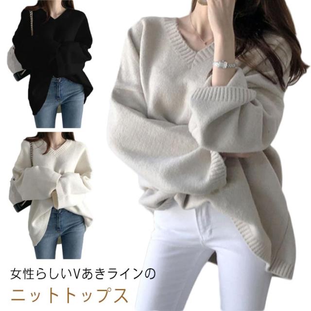 ニット トップス ニット ニットトップス レディース Vネック プルオーバー 長袖 きれいめ 大人カジュアル シンプル 春 秋