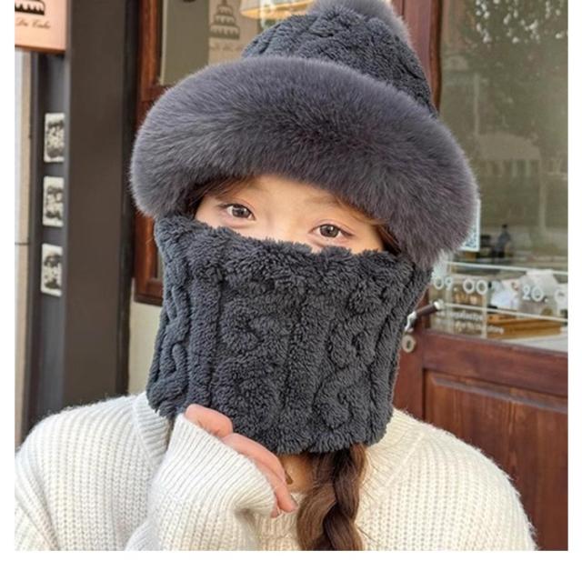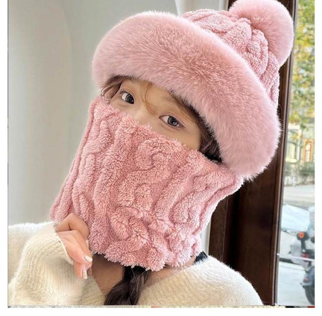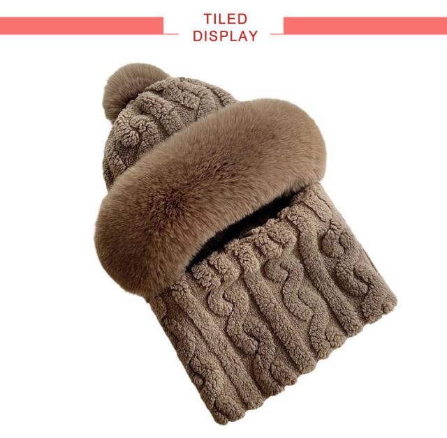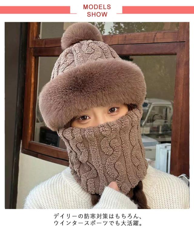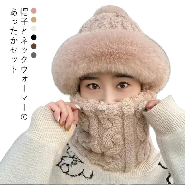 ニット帽 レディース 裏ボア 帽子 キャップ ネックウォーマー スヌード 一体型 2in1 厚手 防寒 誕生日 プレゼント クリスマス 冬