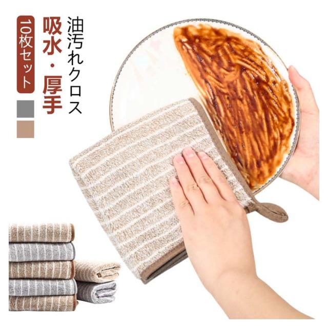 【10枚セット】油汚れクロス 洗剤不要 厚手 キッチンクロス ふきん マイクロファイバー 油汚れ 醤油 油ハネ 食べこぼし クロス 布巾 コンロ レンジ 台拭き ぞうきん 雑巾 吸水力抜群 レンジクロス キッチンタオル 掃除 台所 ロープ付き