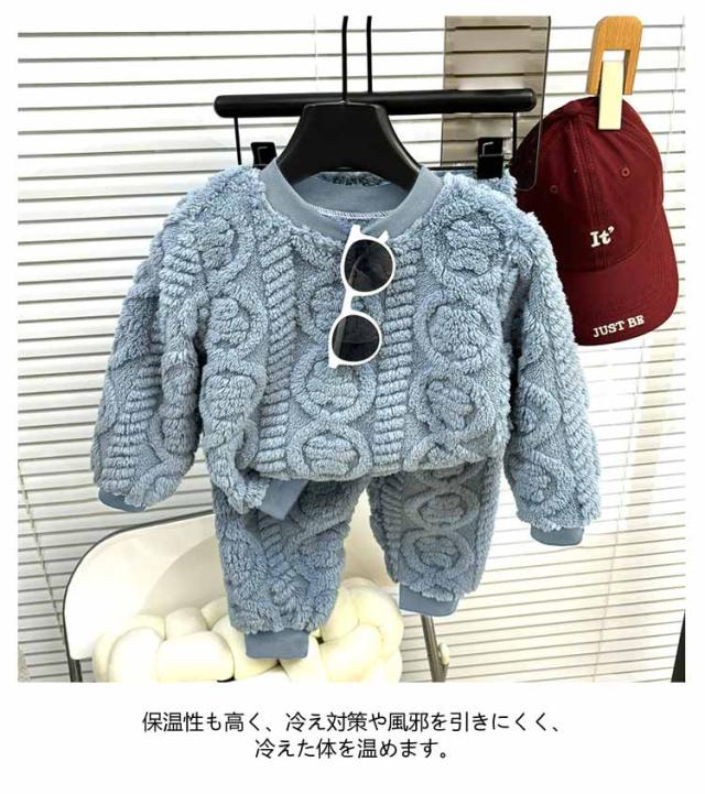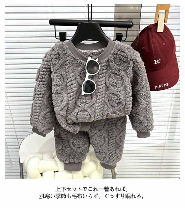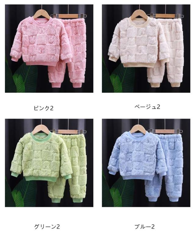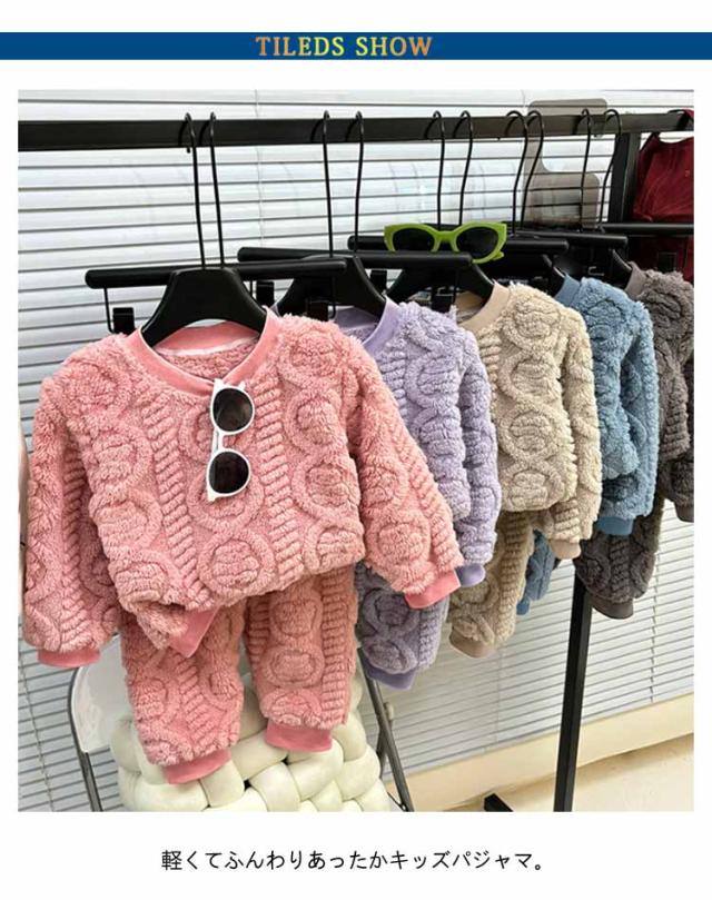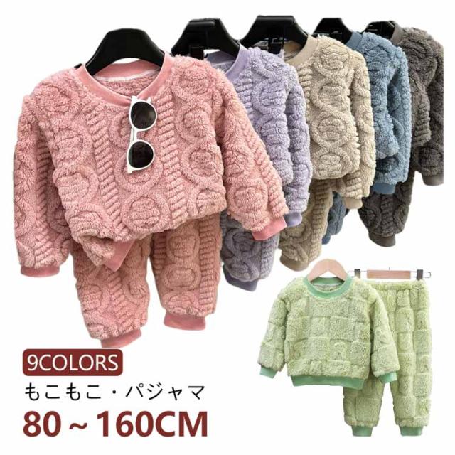 パジャマ キッズ 女の子 男の子 もこもこ 長袖 冬 子供 上下セット ルームウェア 部屋着 80 90 100 110 120 130 140 150 160cm ウエストゴム 袖口 足首 ゴム 伸縮性 ストレッチ 厚手 無地 子ども 寝巻き 防寒 ふわふわ あったか