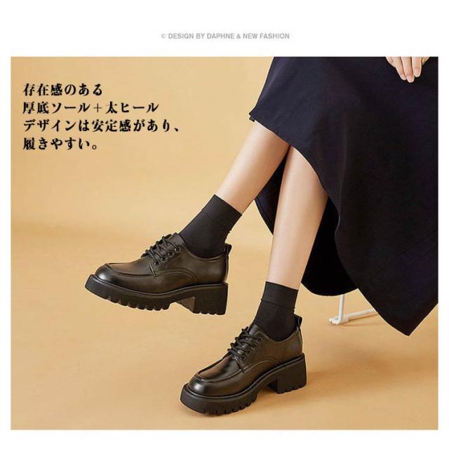 | 【2タイプ】美脚+快適さの両方を叶えてくれるレースアップシューズ。 高品質な合成皮革で作られております。 ほどよい丸さのラウンドトウのアッパーデザインなのでとてもかわいい。 存在感のある厚底ソール+太ヒールデザインは安定感があり、履きやすい。 飽きの来ない定番シンプルプレーンデザインなので、カジュアルスタイルで大活躍。 | |