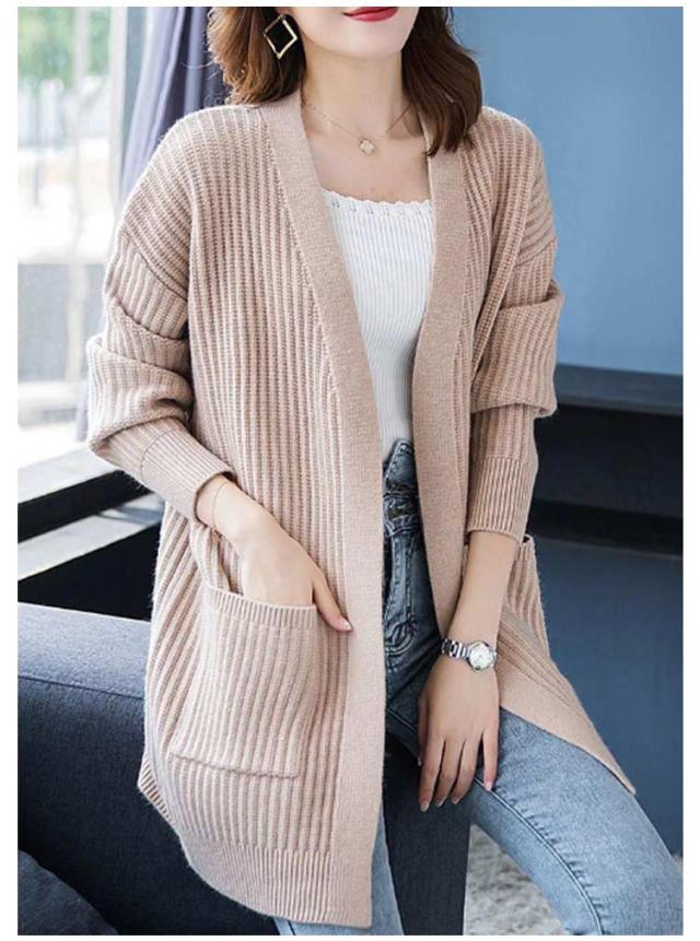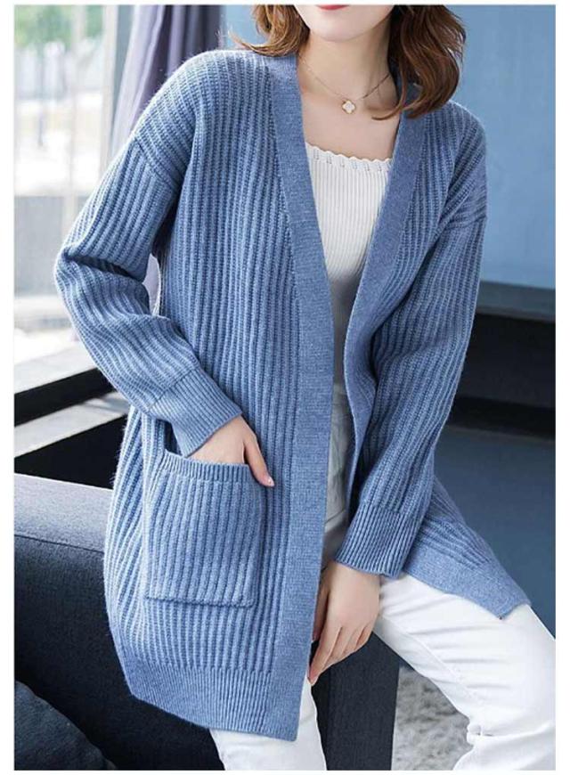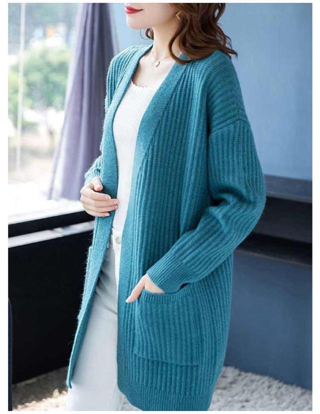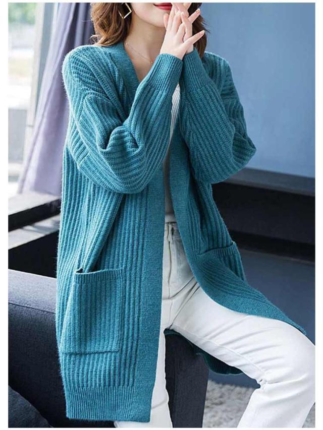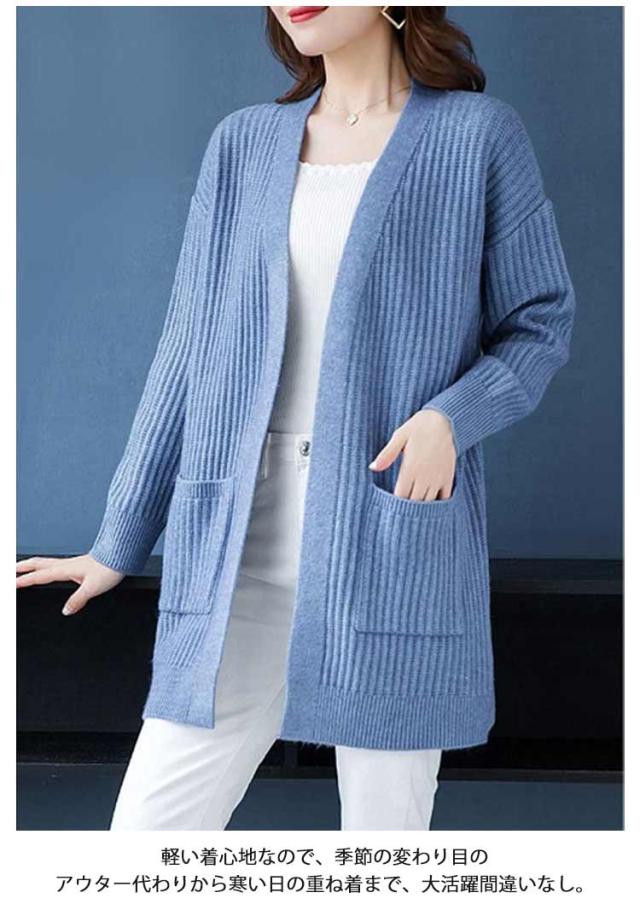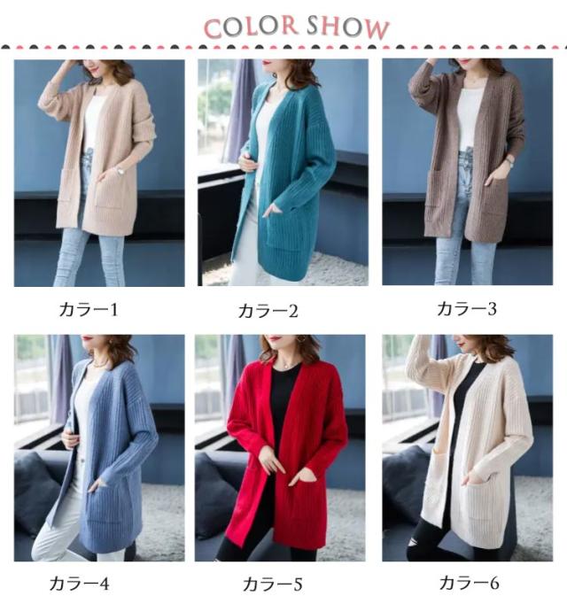 ざっくり ニット カーディガン レディース 秋冬 ロング ニットカーディガン 長袖 ロングカーディガン ニットトップス セーター アウター ロング丈 シンプル ポケット付き カジュアル 可愛い スリム シンプル M L XL 2XL 3XL 4XL