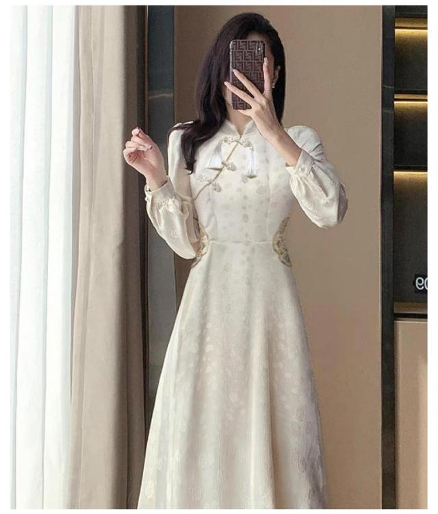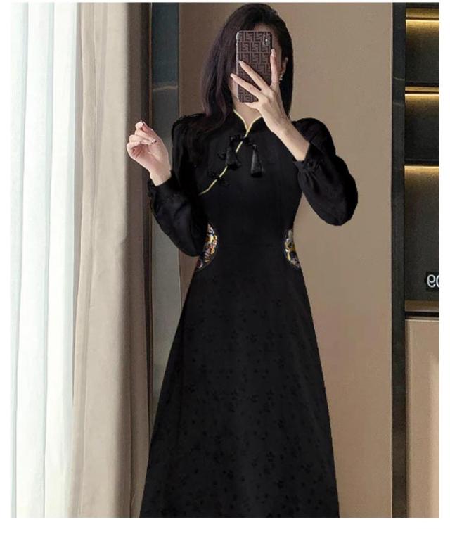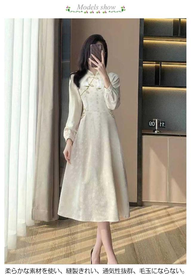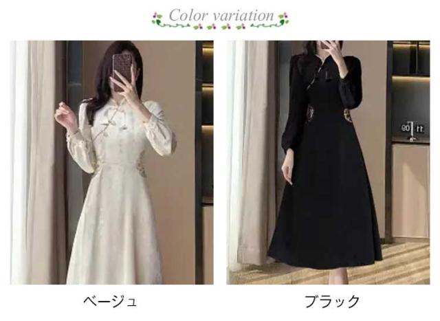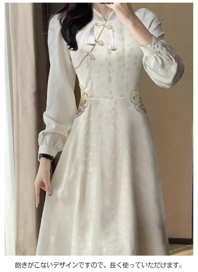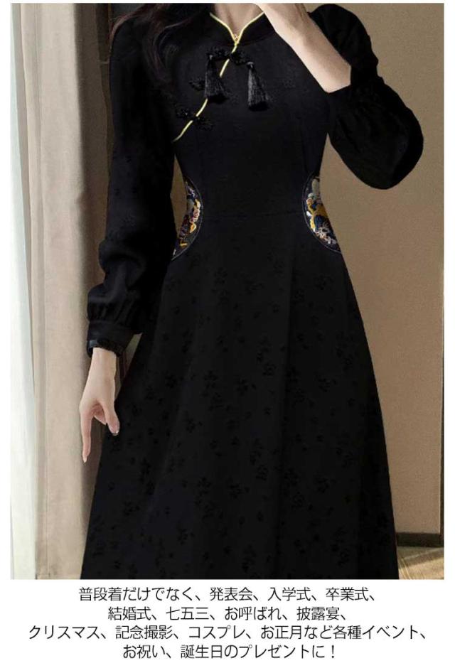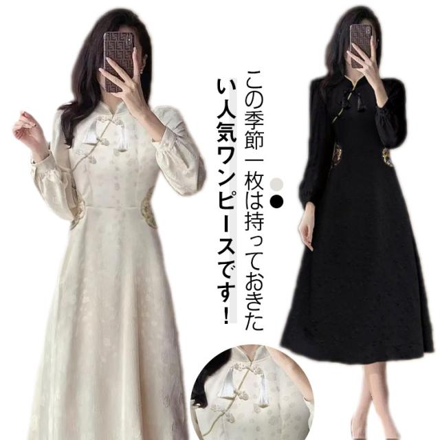 体型カバー 秋冬 チャイナボタン ワンピース ロングワンピース きれいめ 長袖 秋冬 マキシワンピース 品 大人 フォーマル 通勤 オフィス 大きいサイズ チャイナドレス カジュアル