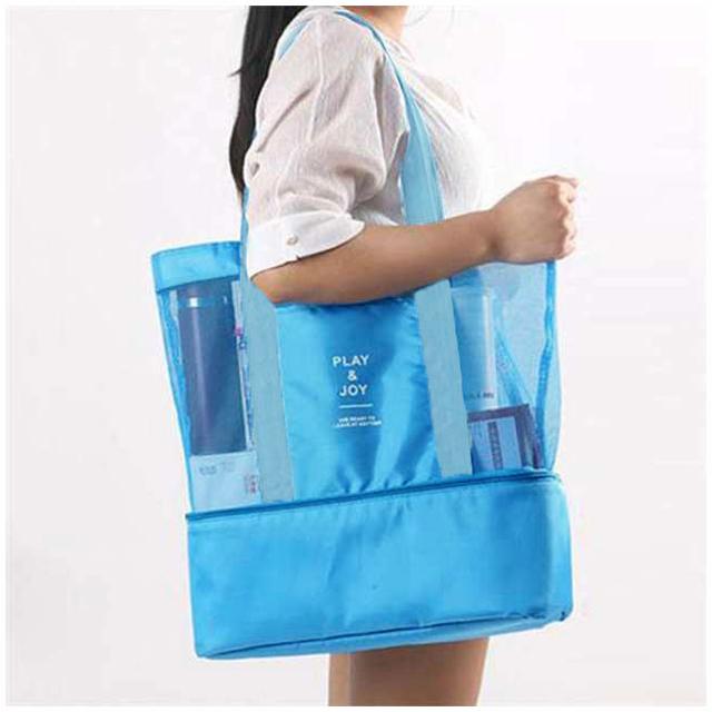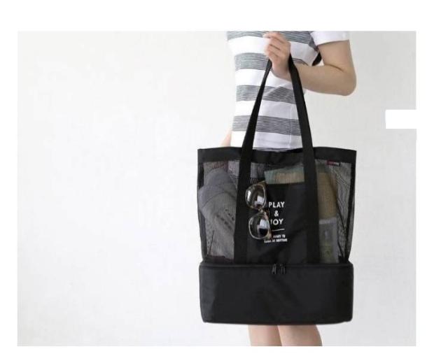 | 乾湿分離!温泉、プールや海へ水遊びに最適なメッシュバッグ メイン収納部は乾湿2ルーム分けられています。濡れたものやビーチサンダルを入れたりできて便利です。 日常生活の洗顔用品、バス用品がゆっくり収納できます。服、靴、水筒、傘、おやつでも全部入れる大容量!ビーチや公園のお砂遊びのおもちゃ入れに大きくてたっぷり入ります。 メッシュ素材のバッグは、通気性が非常によく、濡れた衣類を収納しても蒸れにくくなっております。折り畳むこともでき、片付けも簡単です。ビーチやプールでは水着やタオル、シュノーケリングのマスクやフィンなど濡れた物も入れられ、使用後はジャブジャブと丸洗いもOK! | |