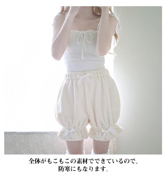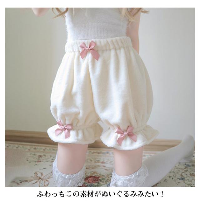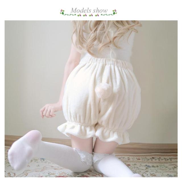 ロリィタ カボチャパンツ ふわふわ可愛いしっぽ付き!ふんわり 秋冬用 短パン 起毛 防寒 ルームパンツ インナーパンツ ペチコート 見せパン ふわふわ可愛いしっぽ付き!ふんわり アンダースコート
