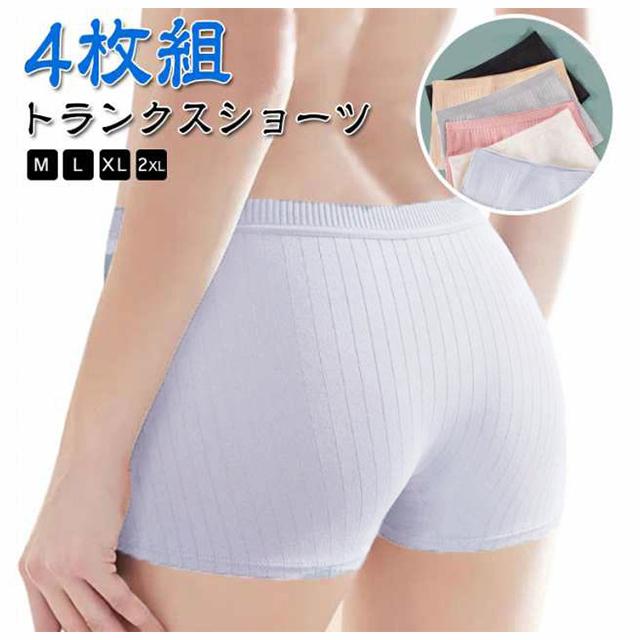 【4枚組】トランクス レディース インナーパンツ 【4枚組】トランクス 肌着 下着 抗菌 女性用 ボックスショーツ 無地 通気性 ショーツ リブ スタンダード 一分丈 おやすみパンツ コットン 生理 すっぽり 深ばき ストレッチ ボクサーパンツ タップパンツ