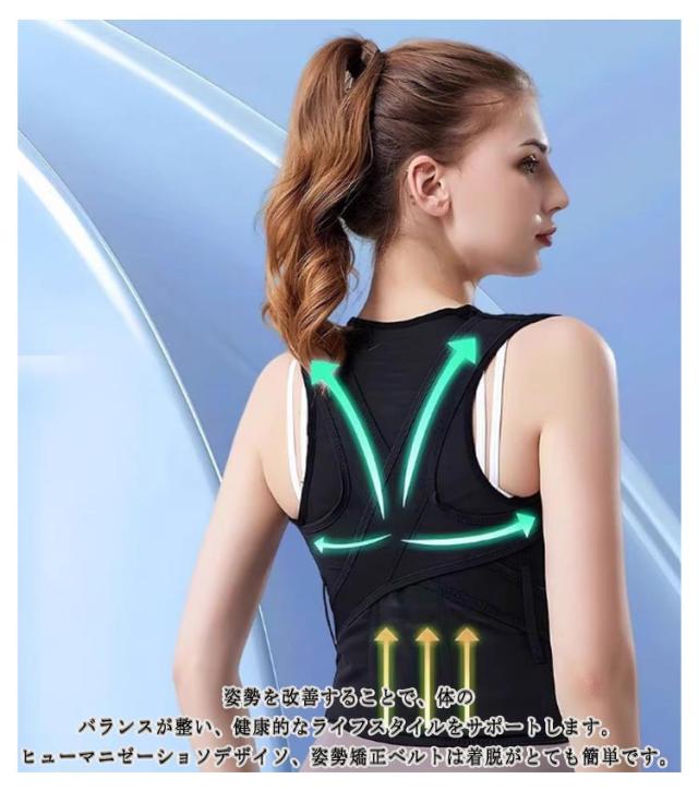 | 人間工学に基づいた姿勢ブレースでまっすぐな背中を伸ばし、肩・首・背中を強化しよい姿勢を作るサポーター 通気素材、伸縮性素材、通気メッシュ、夏でも蒸れない。 ストレッチ、締め具合調整可能、快適な着用感。 背筋を自然に伸ばし、肩の位置を正しく保つことで猫背や巻き肩を効果的に矯正します。 姿勢を改善することで、体のバランスが整い、健康的なライフスタイルをサポートします。 ヒューマニゼーショソデザイソ、姿勢矯正ベルトは着脱がとても簡単です。 締め付けの矯正具合もウエストバンドとショルダーバンド、2つのバンドで調整ができるため、微調整も簡単です。 子供から大人まで幅広いサイズが揃っており、家族全員での使用が可能です。 | |